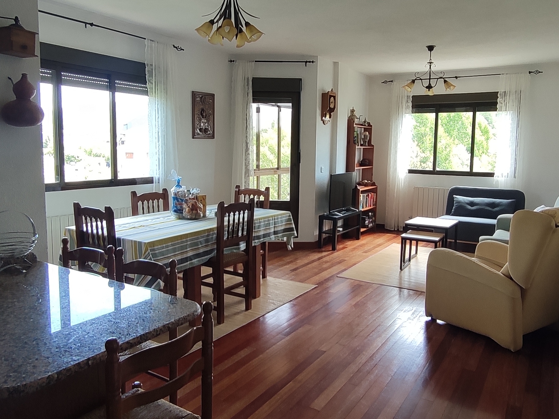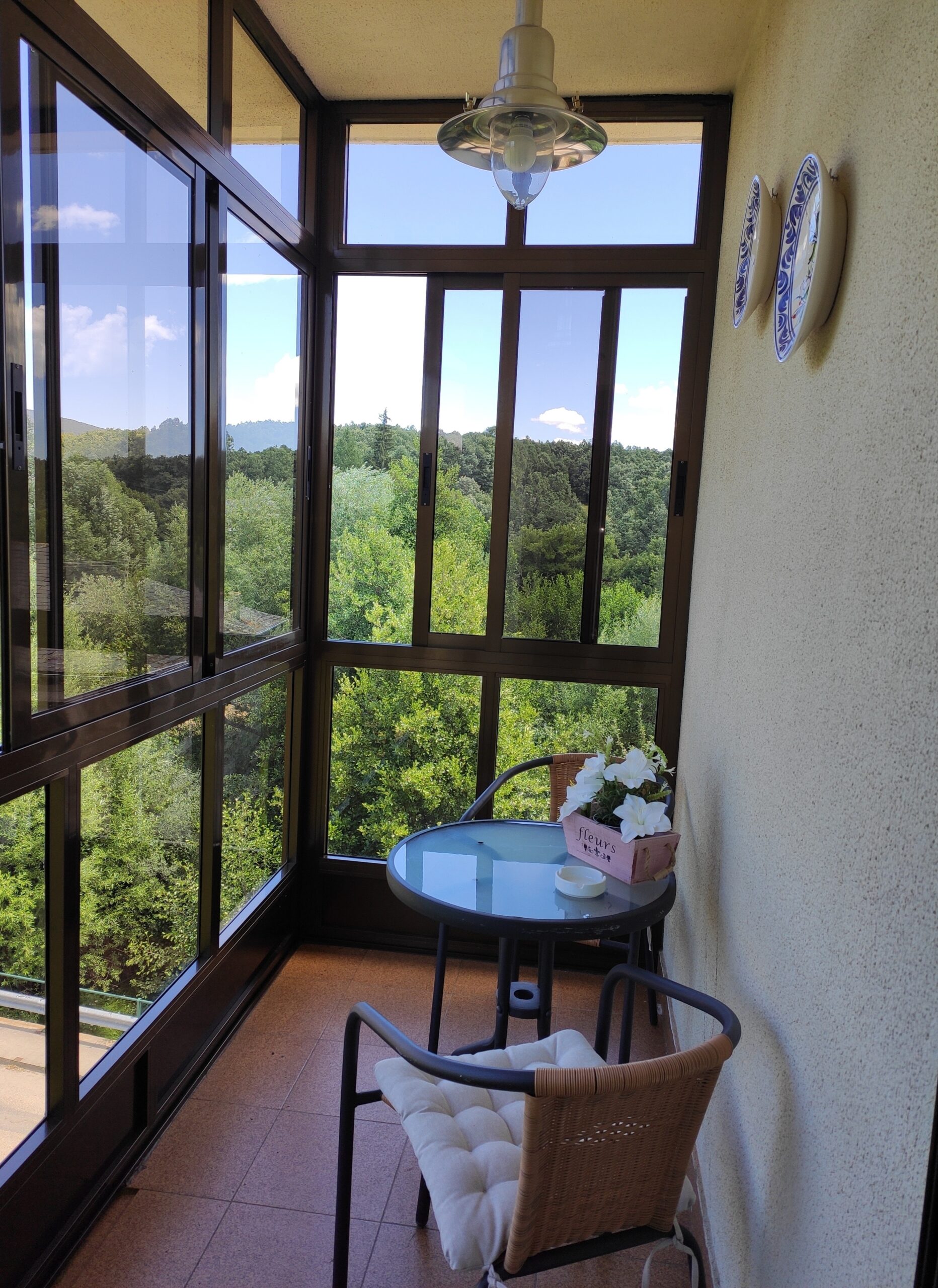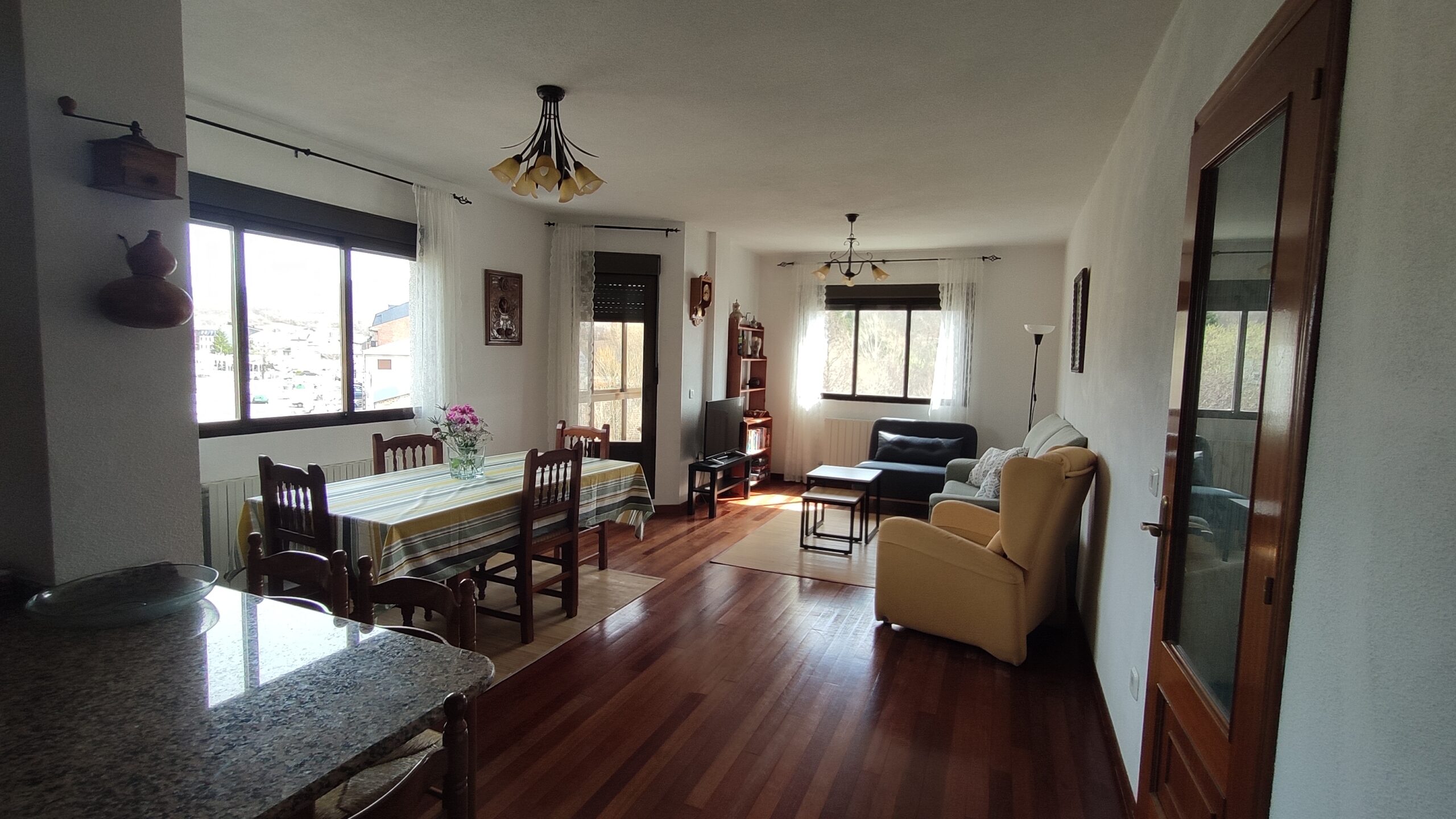 Un salón comedor con mirador
